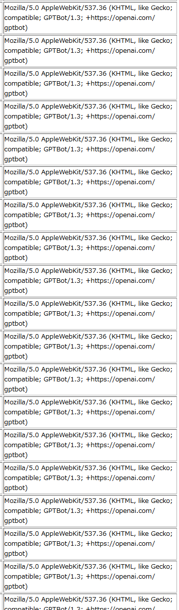 先日、このサイト(INASOFT 管理人のひとこと)のアクセス数が急増していて、どこから来ているアクセスのなのかと調べてみたら、User-Agentが文字列がGPTBotとなっているアクセスが大量に来ておりました。 ![]() どうやら、AI相手にバズっているってことでしょうかね。 あまりうれしくないですが、でも、自分の文章を参考にAIが回答を作る時代が来ていると思うと、なんか面白い。 今度、一週間くらい、AIに記事(と挿絵)を作らせて、それを掲載するだけという日を作ってみようかな。 目次の表示: ブログではないので、コメント機能とトラックバック機能は提供していません。ご質問・ご意見等はメール、フィードバックまたはTwitter等からお願いします。いただいたご質問・ご意見などは、この「管理人のひとこと」の記事に追加、あるいは新規の記事にする形で一部または全文をそのまま、あるいは加工させていただいた上で、ご紹介させていただく場合があります。 当サイトでは掲載内容による不具合等に関する責任を持ちません。また、内容の正確性についての保証もありませんので、情報をご利用の際は、利用者の自己責任で確認をお願いします。 |