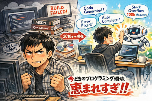 こんにちは、INASOFT 管理人の矢吹拓也です。 最近の若い……いや、若くなくてもいいんですが、今どきのプログラミング環境を見るたびに、正直、嫉妬しています。 今日は、2010年ごろのプログラミング環境を知っている人間として、 ■ 2010年ごろの現実2010年といえば、Windows