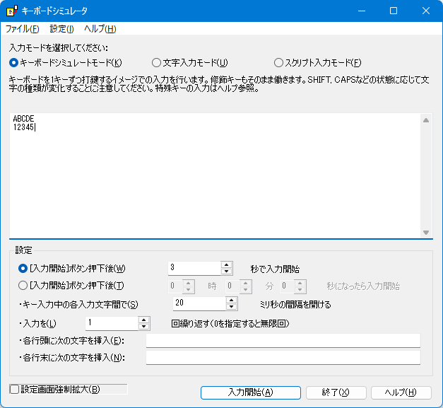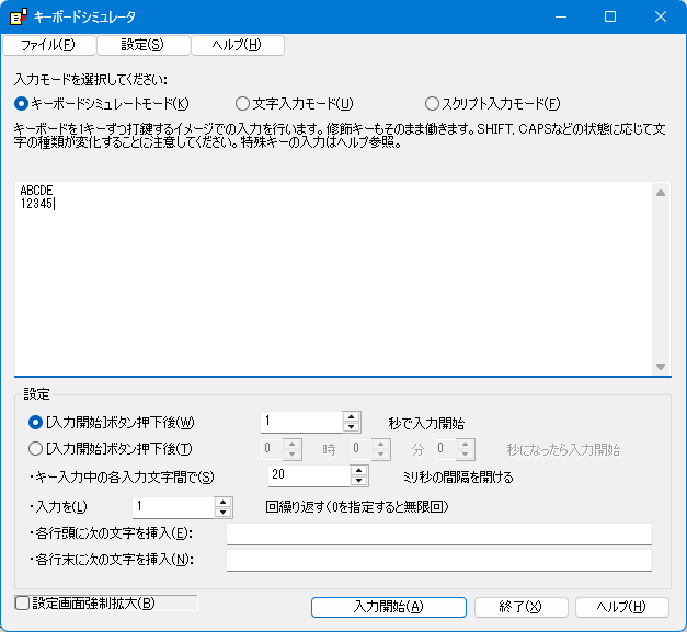 昨日、キーボードシミュレータ ver.2.00.03β、マウスふるふる ver.1.26.05β、マウスのお供 ver.1.67.05βを公開しましたので、その件の詳細について触れたいと思います。 前回、マウスのお供の中で、マウスの位置をいじれた方が面白そうという理由から、マウスふるふる用に準備した、マウス操作系・キーボード操作系のコールバック関数を、マウスのお供にもコピーしたのですが、考えてみると、この機能っていろんなソフトで使えるポテンシャルがあることに気づきまして、コールバック関数ではなく組み込み関数側での実装としました。 これに伴い、初期代入変数に仮想キーコード( VK_***)をガッツリ追加し、また、これまではなかったSentInput() APIを呼び出す組み込み関数「SentInputUnicode()」を追加しました。詳細はFR-Script解説のページを参照で。 また、マウスのお供って、他の設定画面では入力サンプルをダイアログ上で提示していたことに気づきまして、スクリプト機能についても、利用時には入力サンプルをダイアログ上に表示するようにしています。 ![]() マウスふるふるの方は、FR-Scriptの入力ダイアログに、ドラッグ&ドロップによるファイル読み込み機能を追加しています。 テキストファイルの読み込みにおいては、昔と違ってShift_JISであると断定して扱うことができない時代(というかUTF-8が標準な時代)なので、OS標準の文字コード認識機能を用いていますが、ちょっと精度がイマイチかもしれない。 ![]() それから、キーボードシミュレータ ver.2.00.03βについて。 こちらは長らく、「キーボードシミュレータ(.NET) ver.1.xx」として、.NET Frameworkで開発を進めてきておりましたが、今回からネイティブ(C++)での開発に戻しました。 2006年に、本業の方で.NET Frameworkを扱うことが決まり、作者の練習目的で.NET Framework版(当時は.NET Framework 2.0/3.5対応)を作り始めたのがきっかけでした。 ただ、2026年2月に、「.NET Framework 3.5がWindows 11の標準機能(標準設定のON/OFFで有効化/無効化できる)から消え、マイクロソフトのサーバからのスタンドアロンインストーラによる導入方式のみになる」という報道があり、.NET Framework対応ってなんだろうなぁと思い始めるきっかけとなりました。 当時は新しい技術だと思って.NET Framework化を進めたわけですが、まさか.NET Framework 3.5が先に寿命を迎えてしまうとは(サポート期限という意味ではもっと古い)。 (そういえば、SilverLightなんてもんもありましたっけね。新しい技術だから長く残るとは限らない) で、C++ネイティブへの回帰を考えていたところに、いじくるつくーるから分離・独立させたばかりのスクリプト(R-Script→FR-Script)が出てきて、FR-Scriptではキーボードをいじる機能を組み込み関数として絶賛実装中の存在がありました。 スクリプトによるキーボード操作機能もあったらおもしろいんじゃないか?と思うのは自然なこと。 まぁ、生成AI全盛期なので、AIに命令してキーボード操作できた方がもっといいんだろうけど、まぁ、今はそんなのどうでもいいや。 早速、C++版を作ることにしました。 (その後、「キーボードシミュレータ(.NET) ver.1.xx」が現時点で対応しているのは、.NET Framework 3.5ではなく、.NET Framework 4であり、上記の報道はまだ当てはまらないものだったことが分かったのですが、まぁ進んでしまっているのでいいかな、と) で、キーボードシミュレータ ver.2.00.03βの公開となりました。 ![]() 基本的には、前バージョンの機能は踏襲していますが、Space/TAB/Enterの無視・除去機能は、メニューバーの「設定」メニューの中に入れています。 また、「特殊入力」ボタンについては、ヘルプを開いてそこからコピペしてもらう方式に変えます。 その他、他のアプリに搭載を進めている「設定画面強制拡大」機能(日本語モードのみ)、ダークモード対応(メニューバー除く)も行っています。 また、入力ボックスのフォントは、「MS ゴシック」固定(日本語モードの場合)です。 で、スクリプト機能ですね。 ![]() こんな感じでスクリプトを書けます。詳細・サンプルはヘルプページ参照で。 ちなみに、このニュース→「窓の杜 - Microsoft、2026年2月の「Windows Update」を実施 ~Word、Windows シェル、IEコンポで攻撃を確認 「メモ帳」にも脆弱性」の影響でメモ帳のことが嫌いになったので、画面サンプルにメモ帳は使わないようにしました。メモ帳はシンプルだから好きだったのに、余計な機能がモリモリになって使いづらくなり、あまつさえ脆弱性を作りこむなどとんでもないことになってまして。 代わりに、常用している「サクラエディタ」が登場しています。 ↓旧バージョンの画面サンプル ![]() ↓新バージョンの画面サンプル ![]() さて、この先は、細かく出てくるであろう不具合修正に対応しつつ、生成AIに対して、 『このサイト→https://www.inasoft.org/webhelp/autokeyb/HLP000024.htmlに書かれているスクリプト仕様に従って、スクリプトを書いて、「管」の文字を1000個入力するスクリプトを書いて』とお願いするテストと